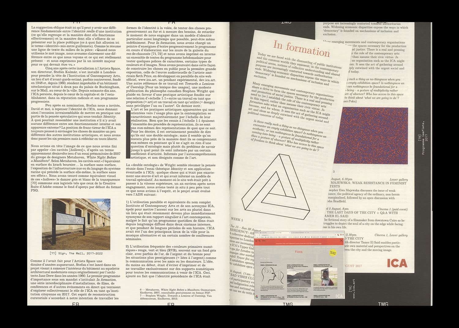 Dans le design graphique, les gabarits sont dédiés au confort et au rendement. Leur double objectif est d’accélérer le travail en économisant la prise de décision, tout en garantissant une cohérence de la production par la restriction des paramètres de choix. Mais les gabarits peuvent aussi être utilisés dans des perspectives moins réductrices et plus entreprenantes. Cet essai retrace le développement de quatre projets réalisés avec des collaborateurs variés qui proposent, à partir d’un tel état d’esprit, autant de gabarits très spécifiques. Classés ici en tant que « mal de tête génératif », « point de rencontre », « terrain de jeu » et « gabarit industriel par défaut », ces quatre formats retracent le passage progressif des médias physiques aux médias numériques au cours de ces deux dernières décennies.