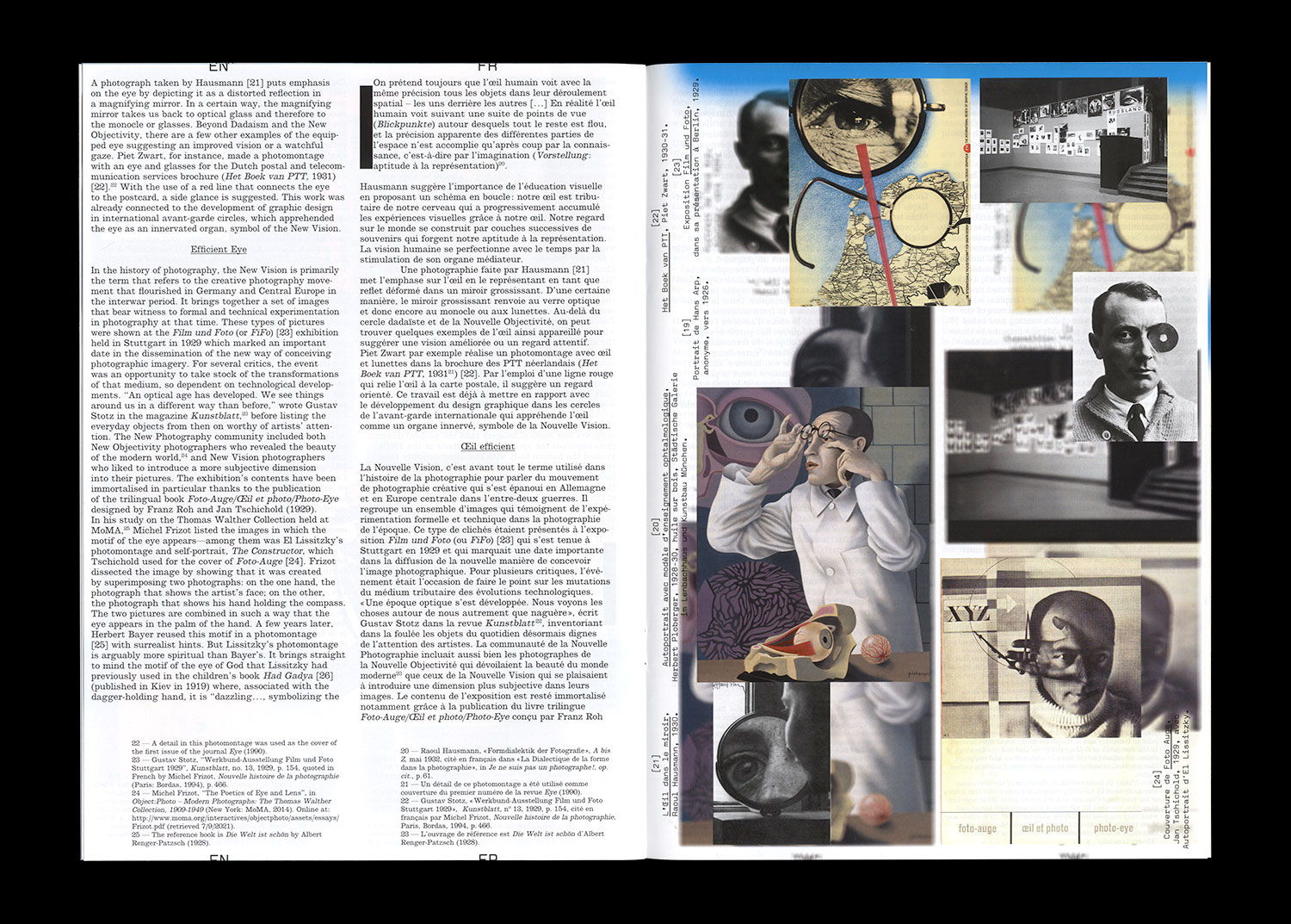 From the poster for the Internationale Hygiene Exhibition in Dresden, designed by Munich native Franz von Stuck (1911), to the cover of the book Écriture et photographie in the advertisement phototypeset by Czechoslovakian Zdeněk Rossmann (1938), by way of Francis Picabia’s iconoclastic The Cacodylic Eye (1921) that is a painting with no paint, this rich corpus testifies to a notable evolution of sensitivity within the avant-garde and a questioning of the accuracy of the vision of the artist in the face of the technological developments of the modern world.