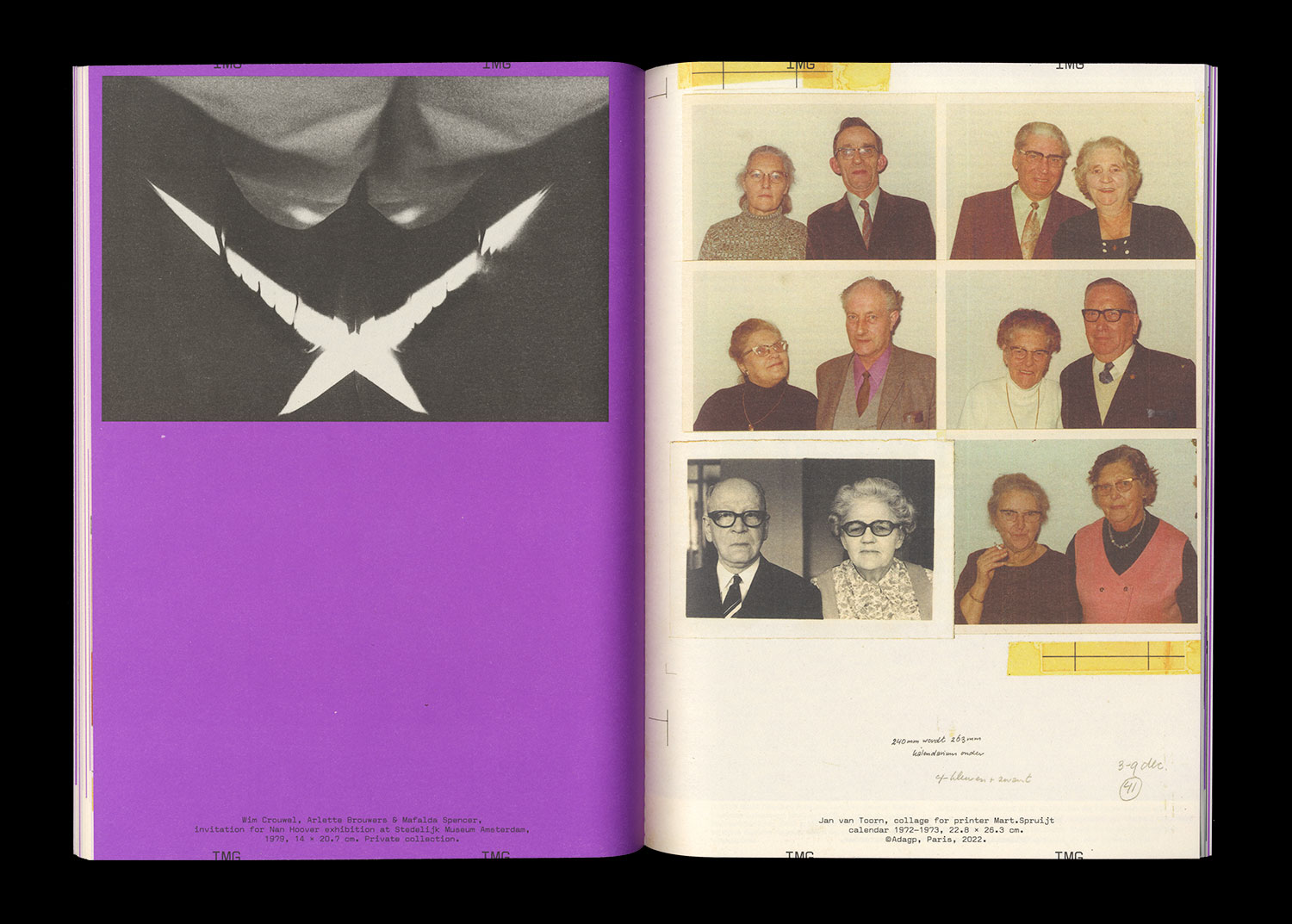 In 2006, the publisher Artimo entrusted Linda van Deursen and Armand Mevis with the editorial direction and the Graphic Design of their own monograph, Recollected Works. Joined by Paul Elliman in writing the texts, the two Graphic Designers responded with an approach similar to that which they adopt when they accompany other artists and photographers in the creation of books whose relevance has largely contributed to the studio’s reputation. Mevis and van Deursen propose to the reader to experience their work in operation, rather than simply contenting themselves with the reproduction of the work presented as artworks in themselves. Rather than the nostalgia for a more or less formalized organization of their previous projects, the two Graphic Designers look at their previous work as the material for an autonomous project from which this book will emerge.